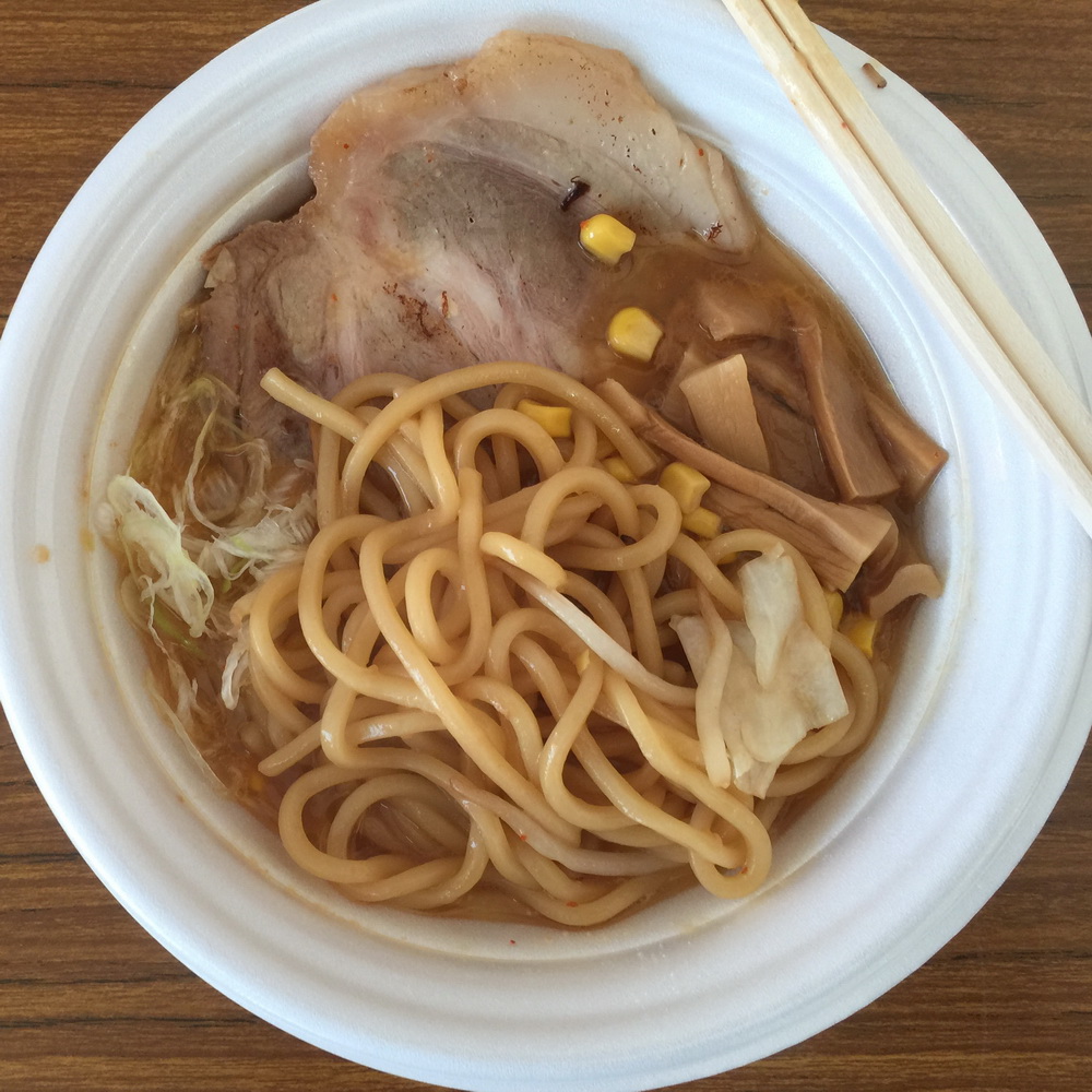 太麺で腰があってみそのスープに良く絡んでいました。味噌のスープは空くし辛めですが、あまり特徴はない感じでした、大きなチャーシューはとても食べ応えがあっておいしかった。